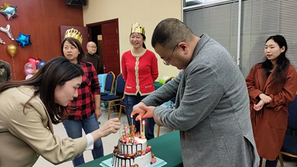 2021年4月2日下午,集團一樓大會議室一片歡聲笑語。集團本部、房產公司、平偉公司的全體同仁為二季度過生日的8位同事,共同慶祝生日。美味的蛋糕、真誠的祝福、趣味小游戲、親切的生日歌,同事們歡聚一堂,其樂融融。